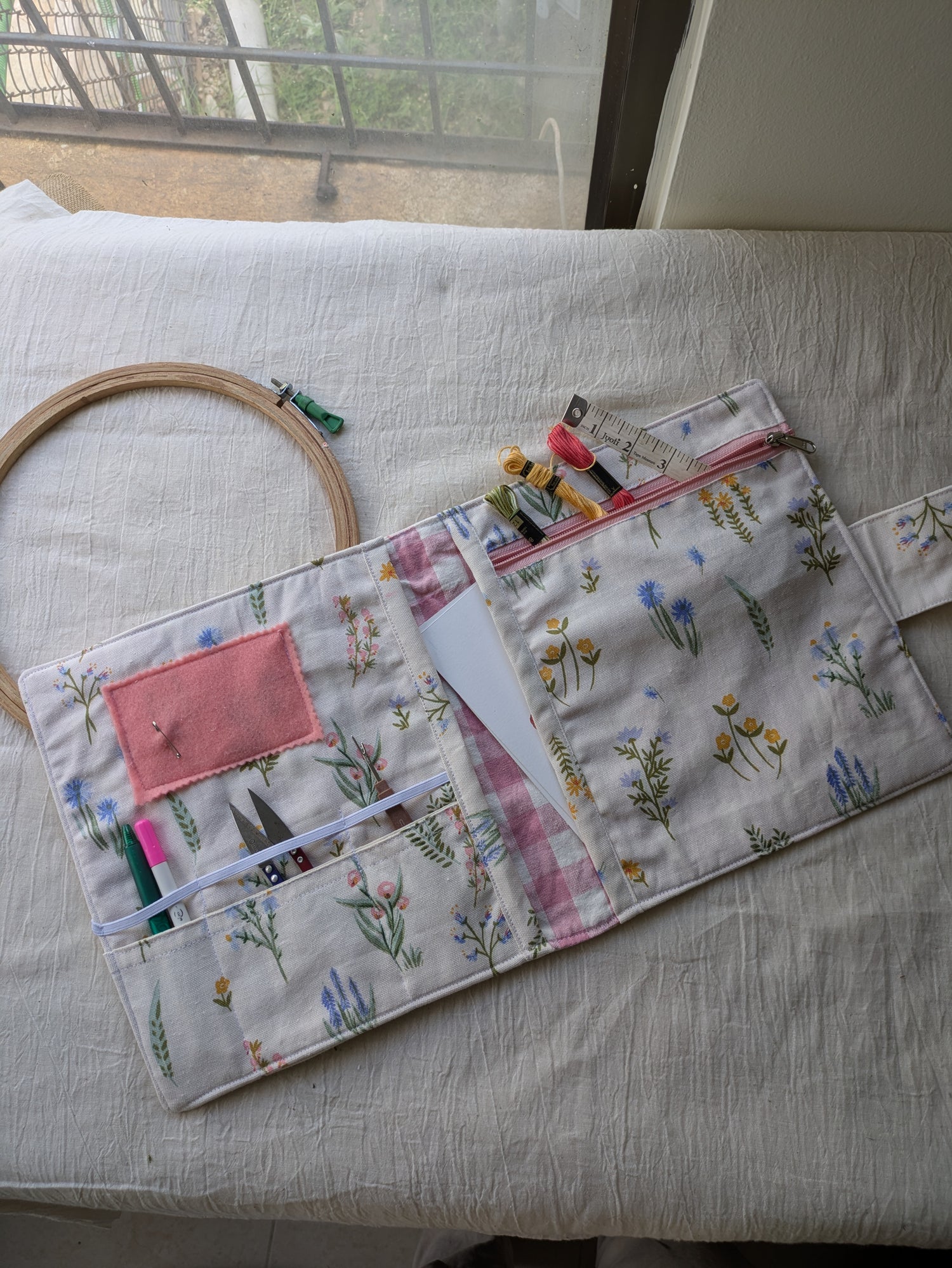 A handy-size, carry-along folder that is ideal for hand embroidery and hand stitching.