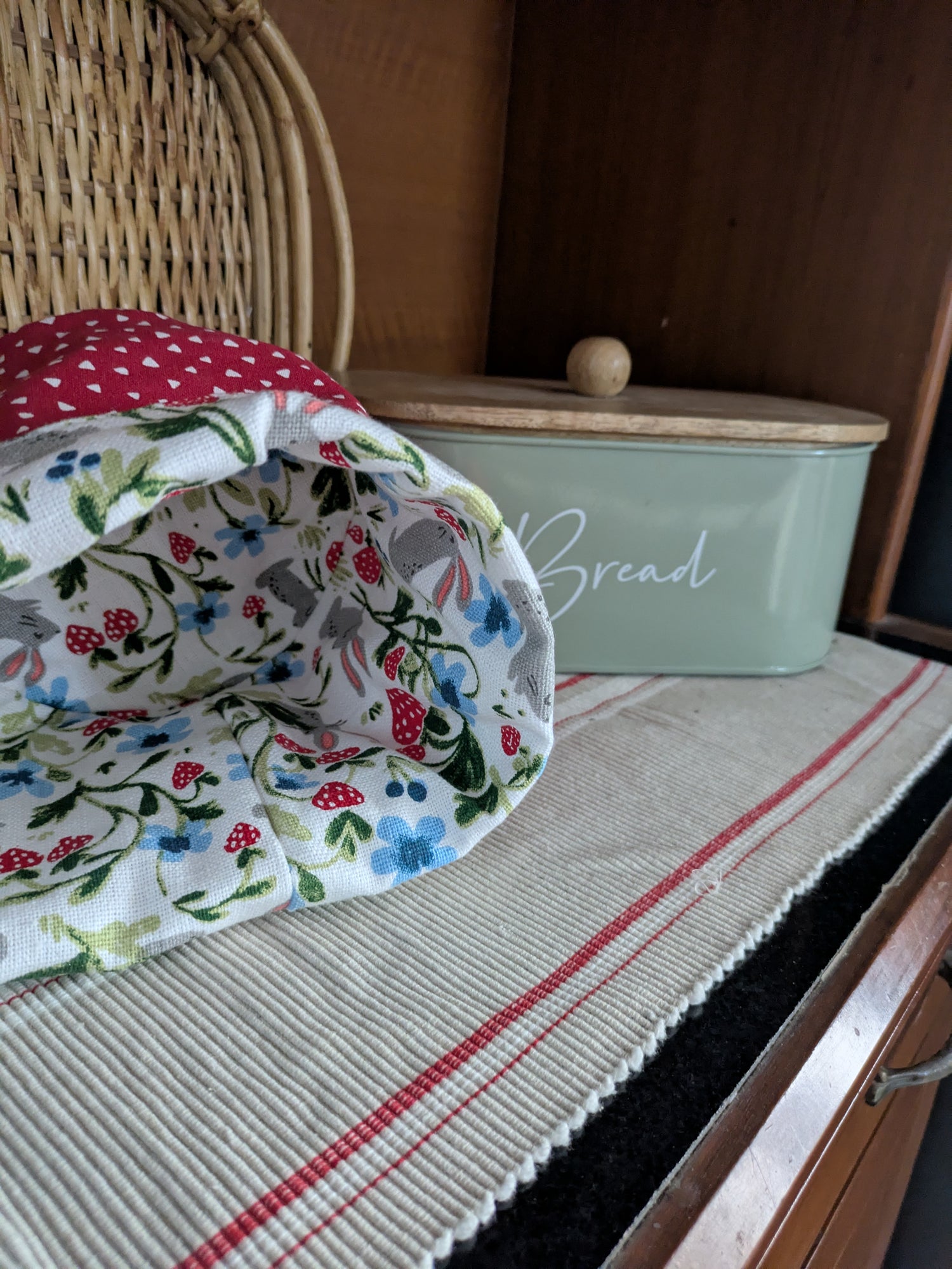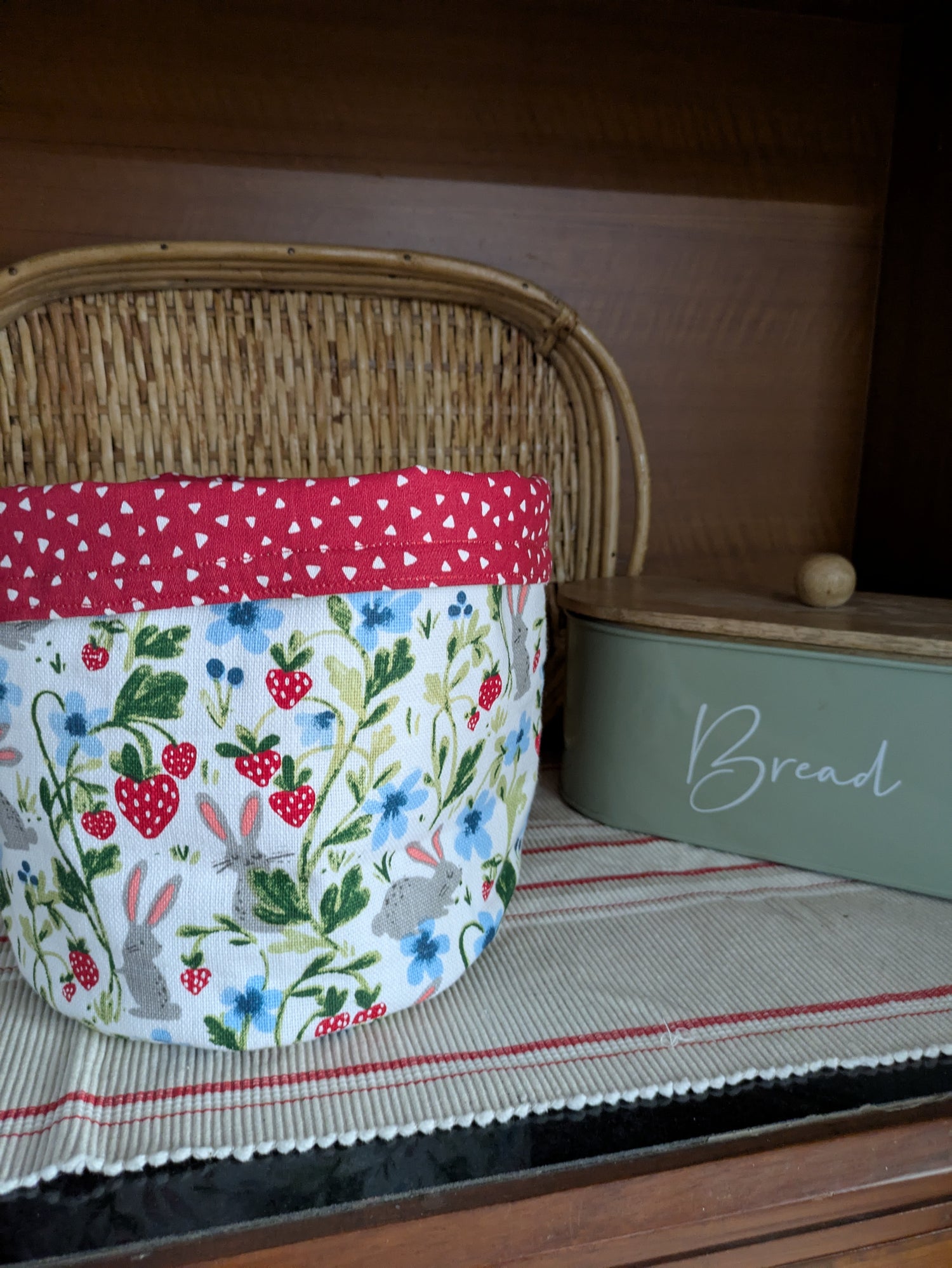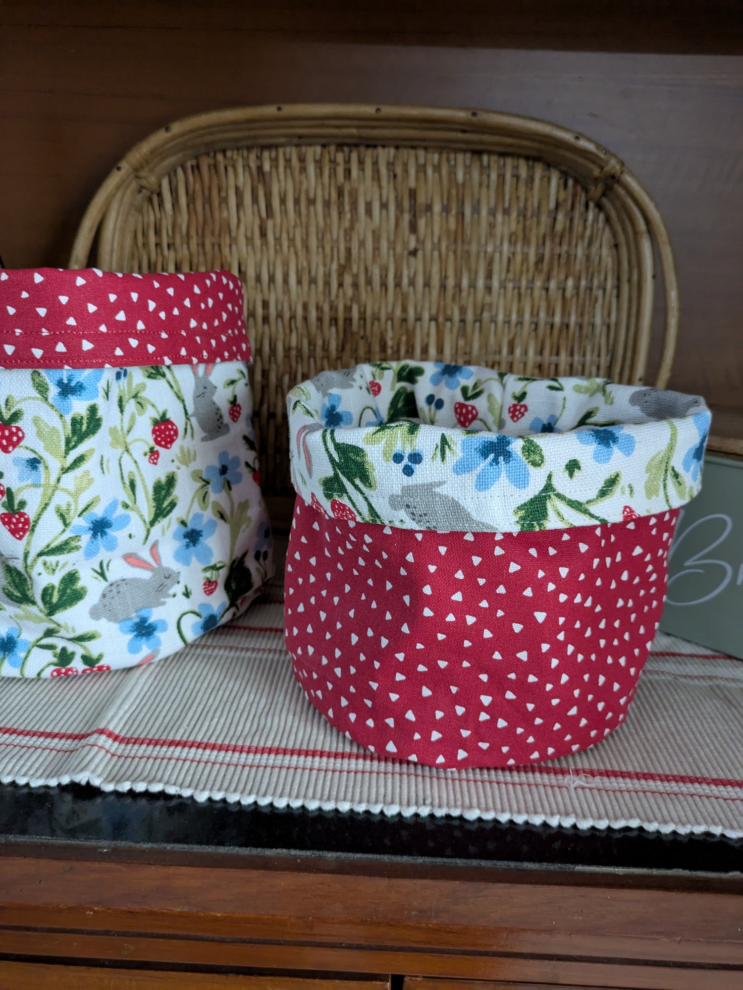 Reversible fabric basket as chic storage for your homes. These will be great as bun baskets or to hold your napkins while hosting for your dining space.