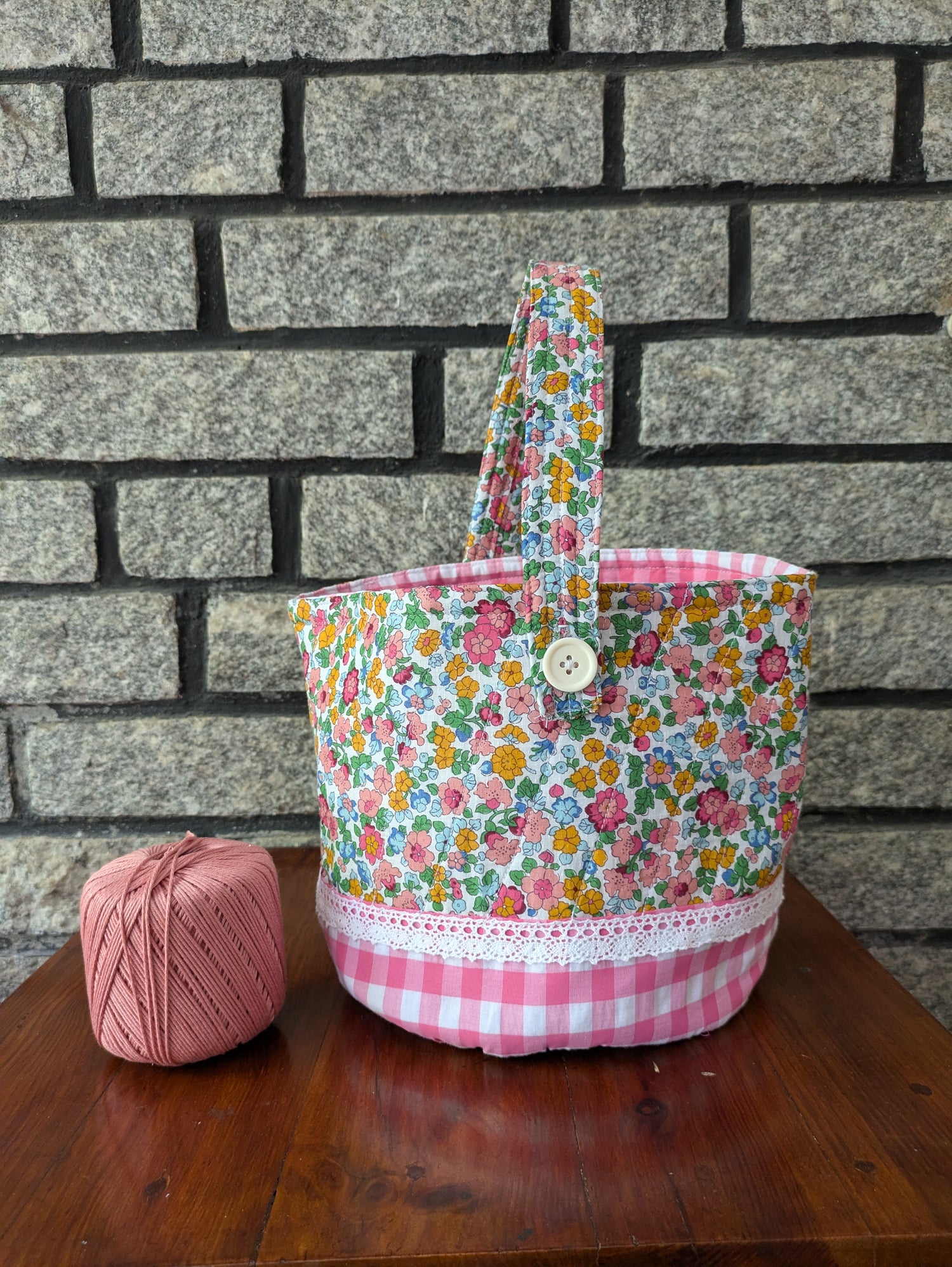 Our maker's basket is a handy-size, carry-along project bag loved by crafters - crocheters and embroiders alike.