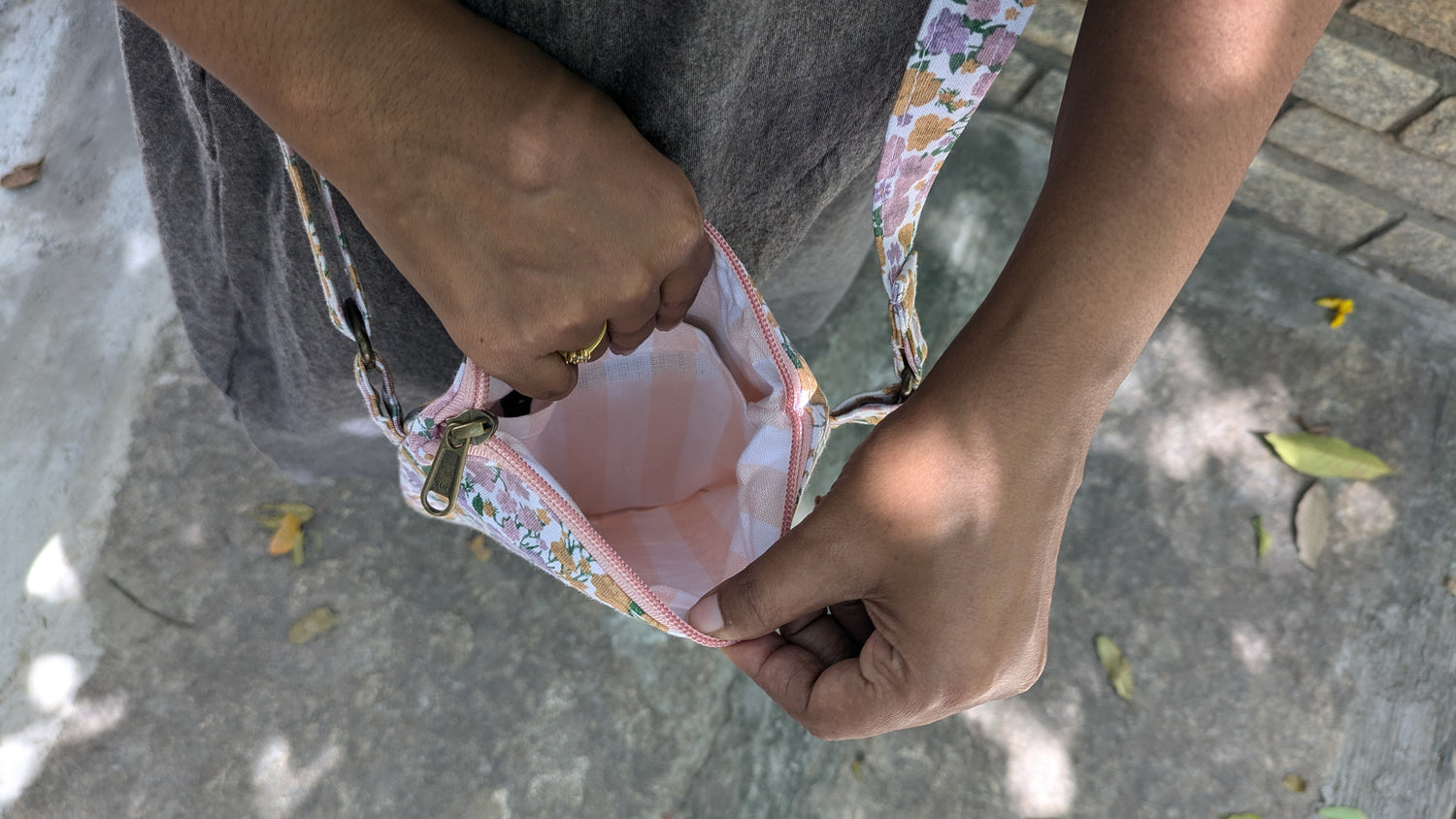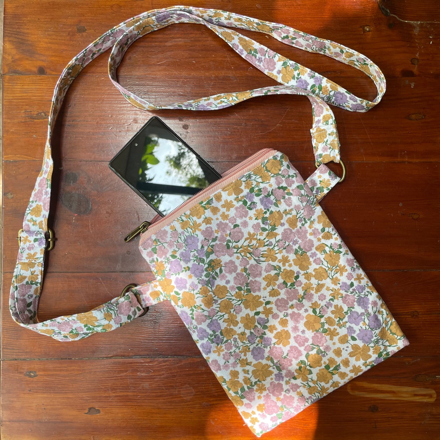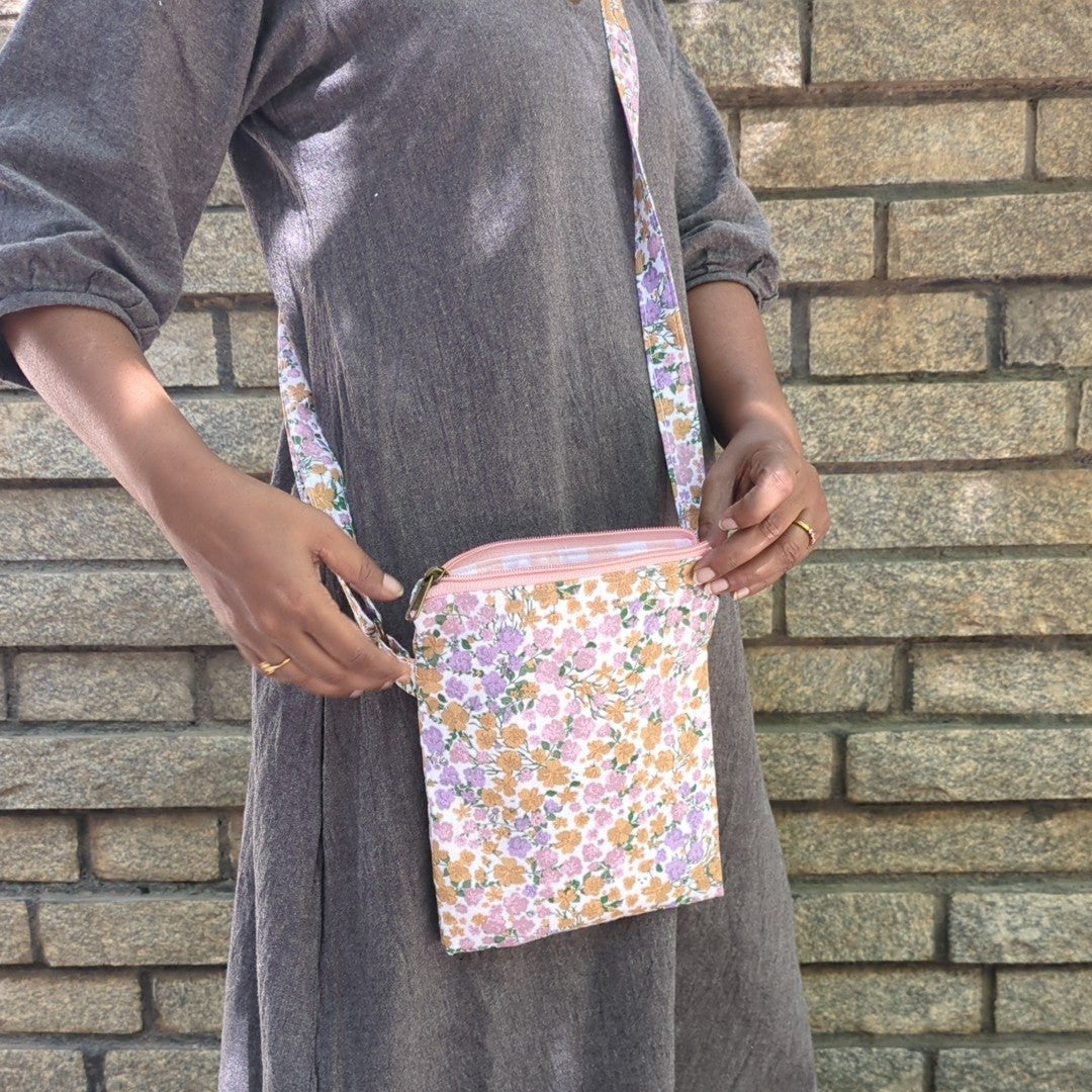 Mobile Sling Bag - Peach Flowers