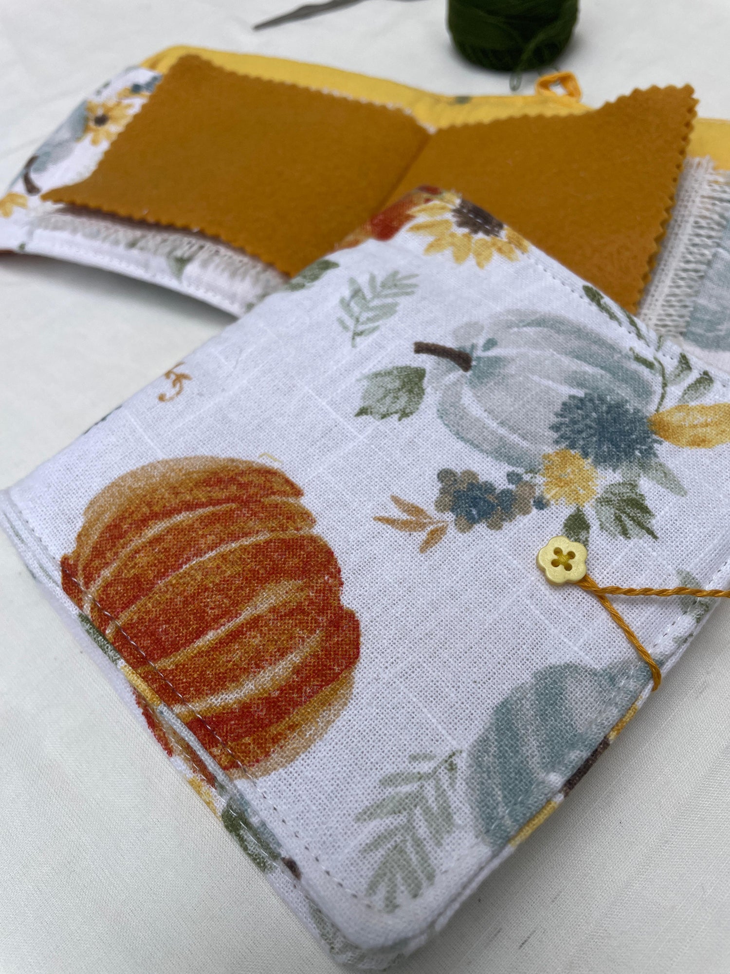 A needlebook made in floral cotton to store your many needles, all in one place.
