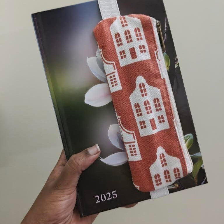 Pen Sleeve with an elastic band , perfect accessory for your hardbound journals and notepads.