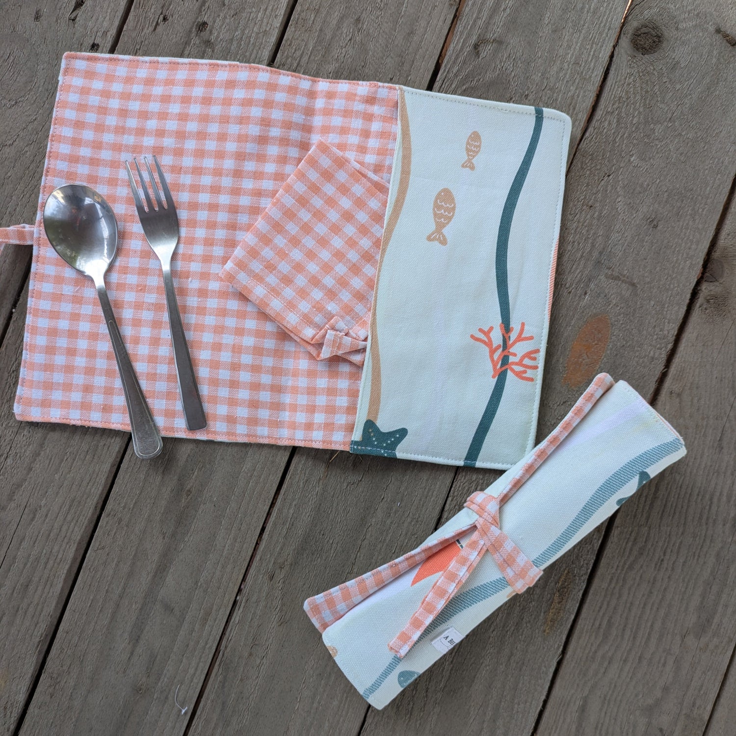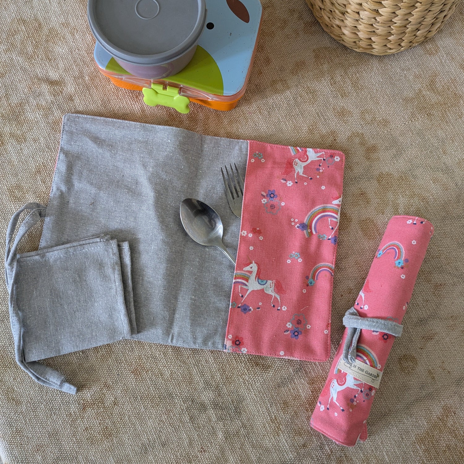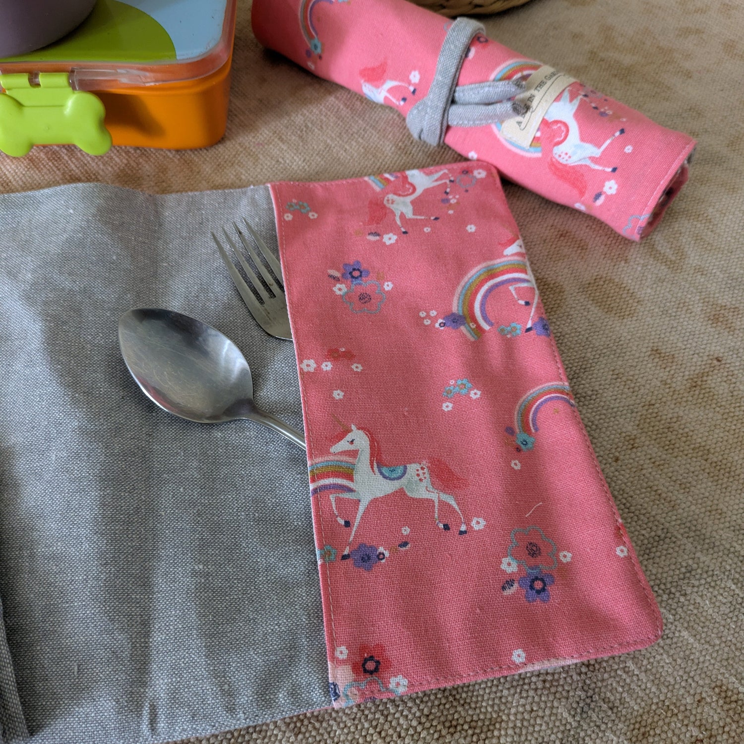Part of our back-to-school edition, these cutlery rolls double up as a placemats and are perfect for a mess free meal time at school.