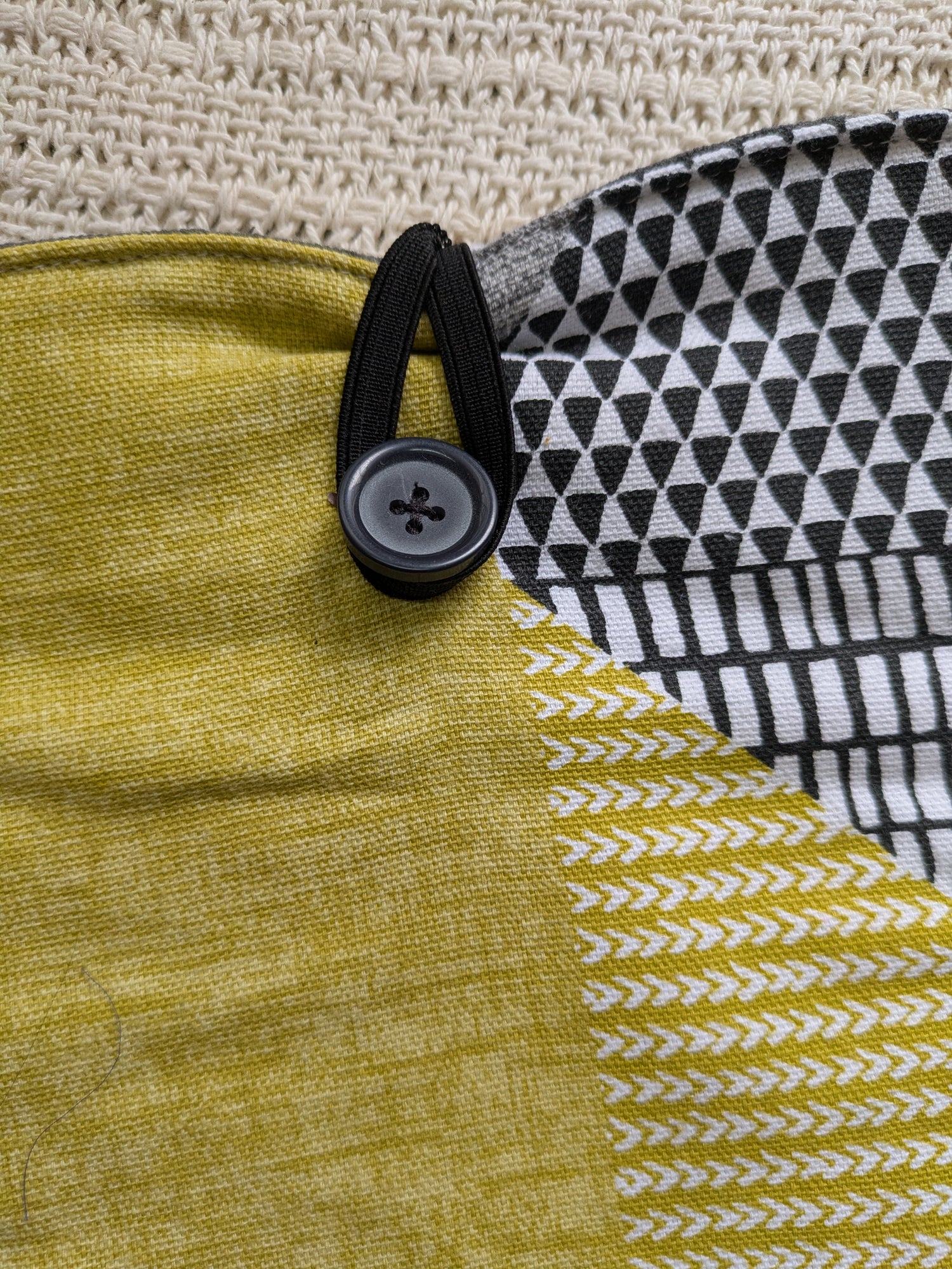 Aesthetic defects - the elastic on this piece is too small around the button - this defect will fade away once the product has been used a while (the elastic gets loser with use)
