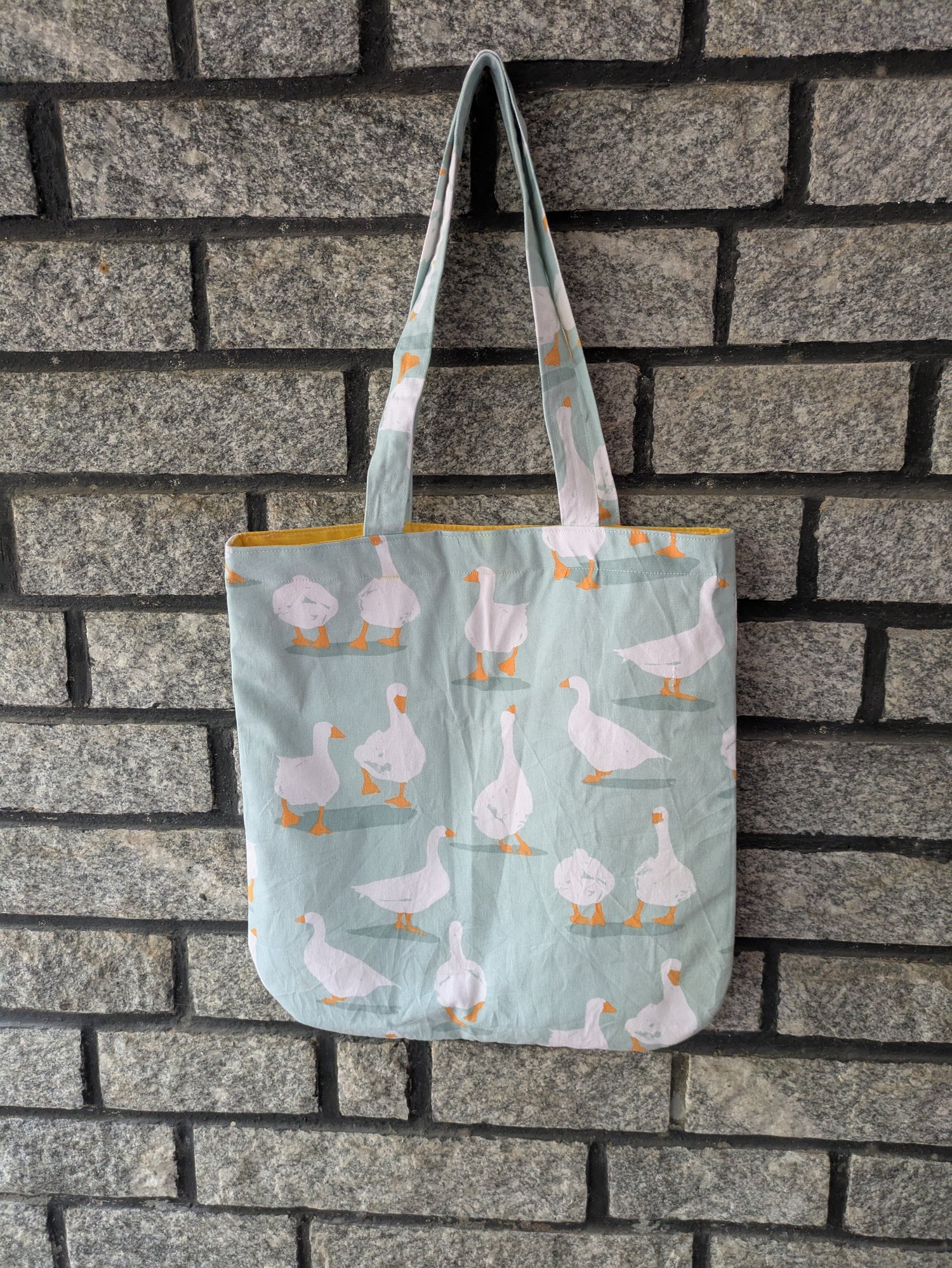 Migrate into style with our charming Geese Print Tote Bag, handmade with love. Made from durable fabric, this spacious tote features a delightful geese design that's perfect for nature lovers, outdoor enthusiasts, and anyone who wants to add a touch of whimsy to their daily routine.
