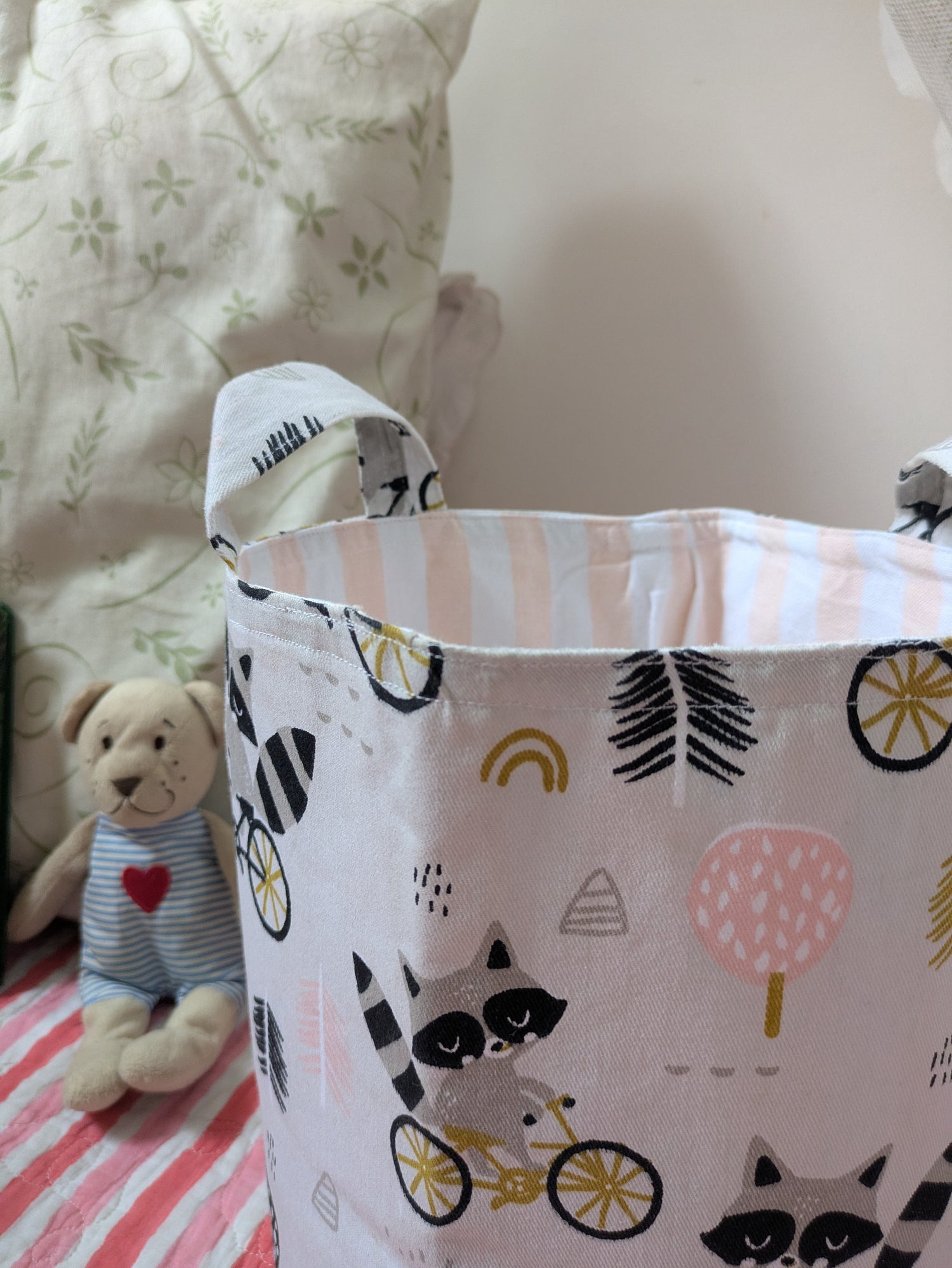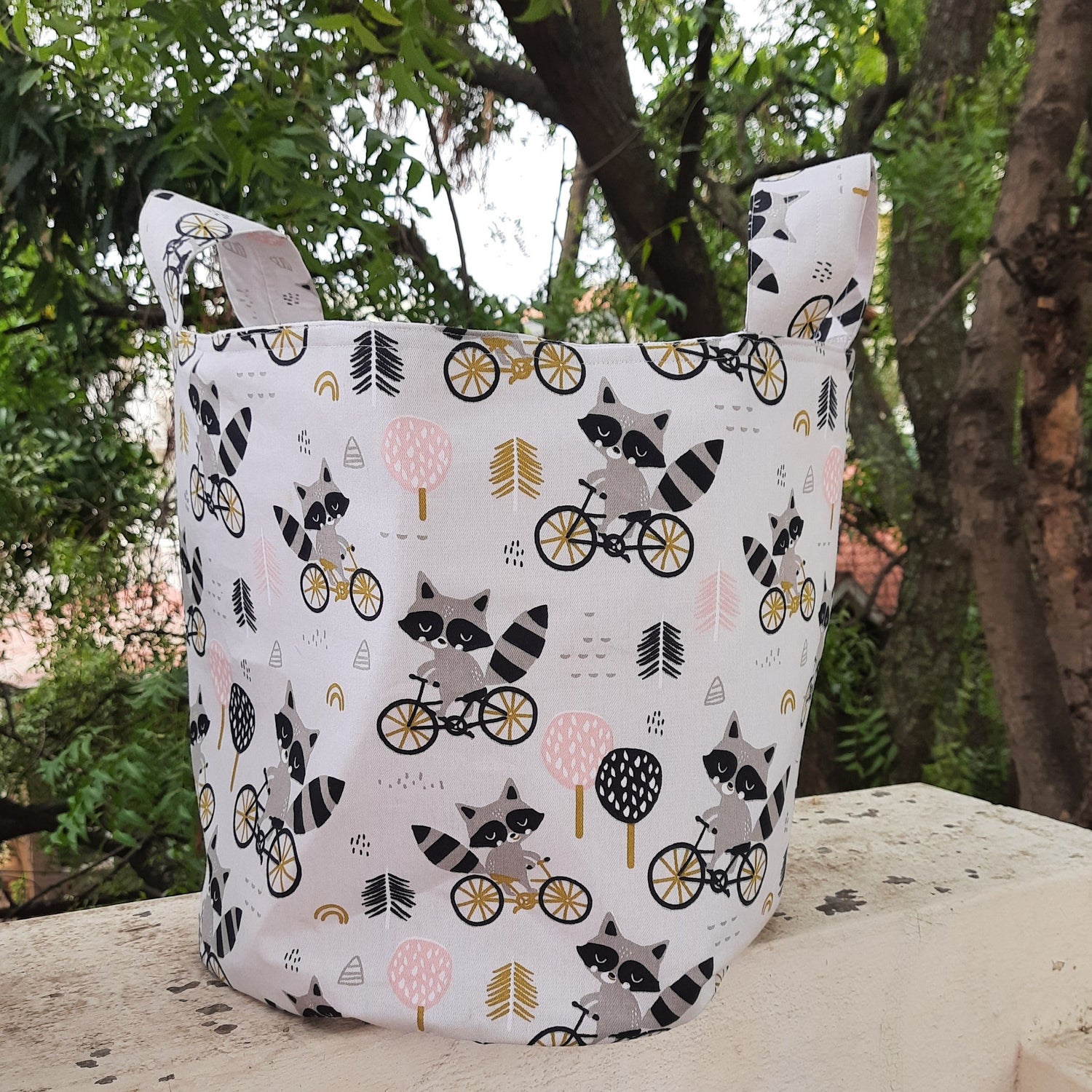 Toy/nursery storage bin-Racoons out on a ride