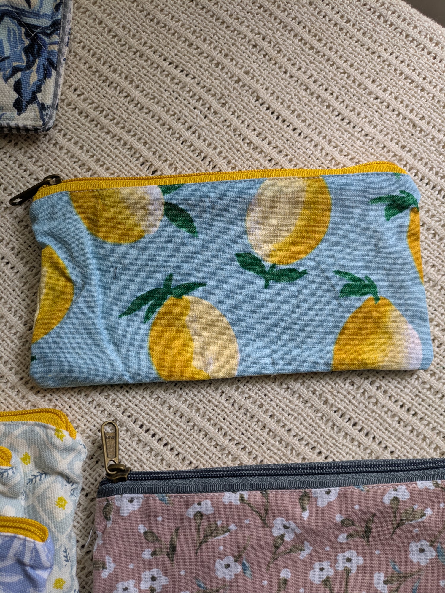 Zip pouches in fun colours and prints upcycled from left over fabric from our larger products. They are made from cut pieces , hence the sizes may vary, please read the sizes listed carefully before placing your order.